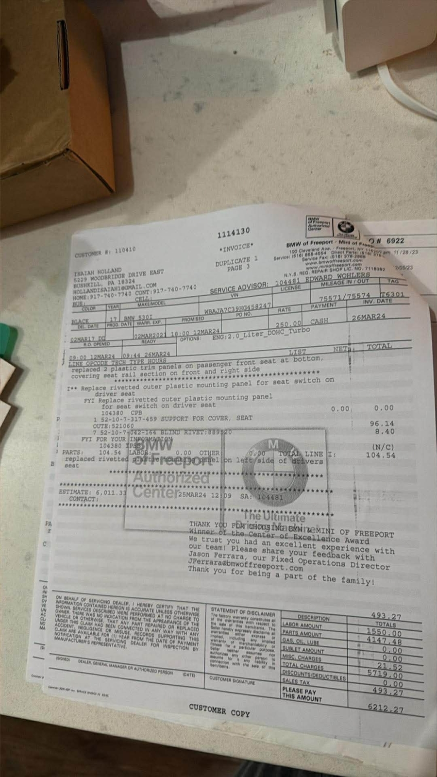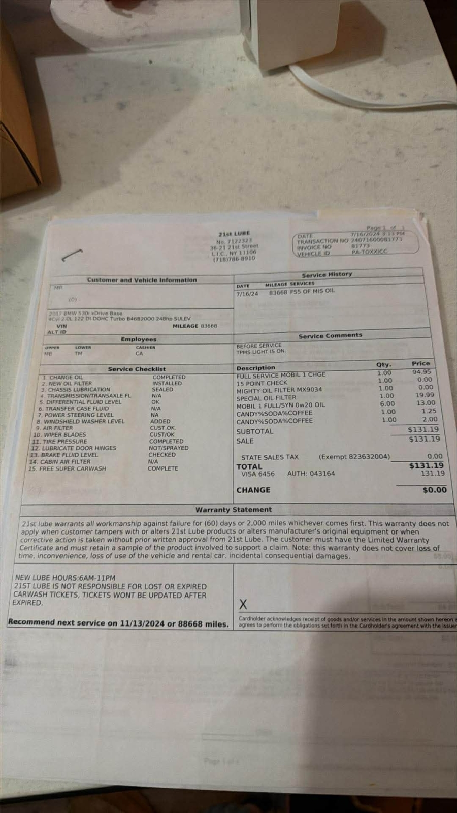 Service & Maintenance Summary – 2017 BMW 530i xDrive