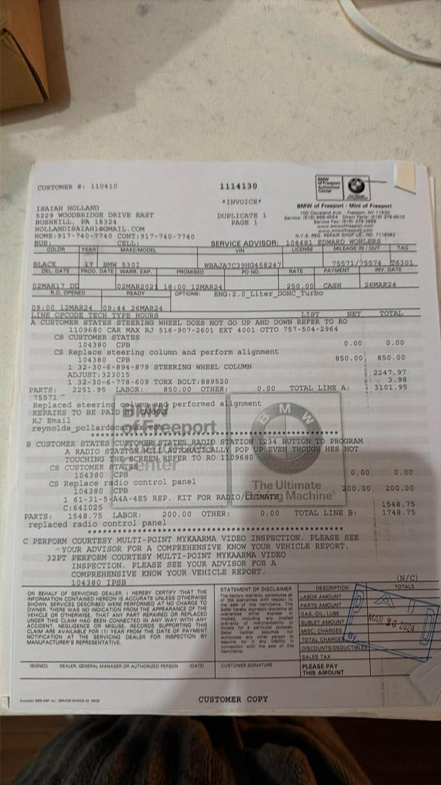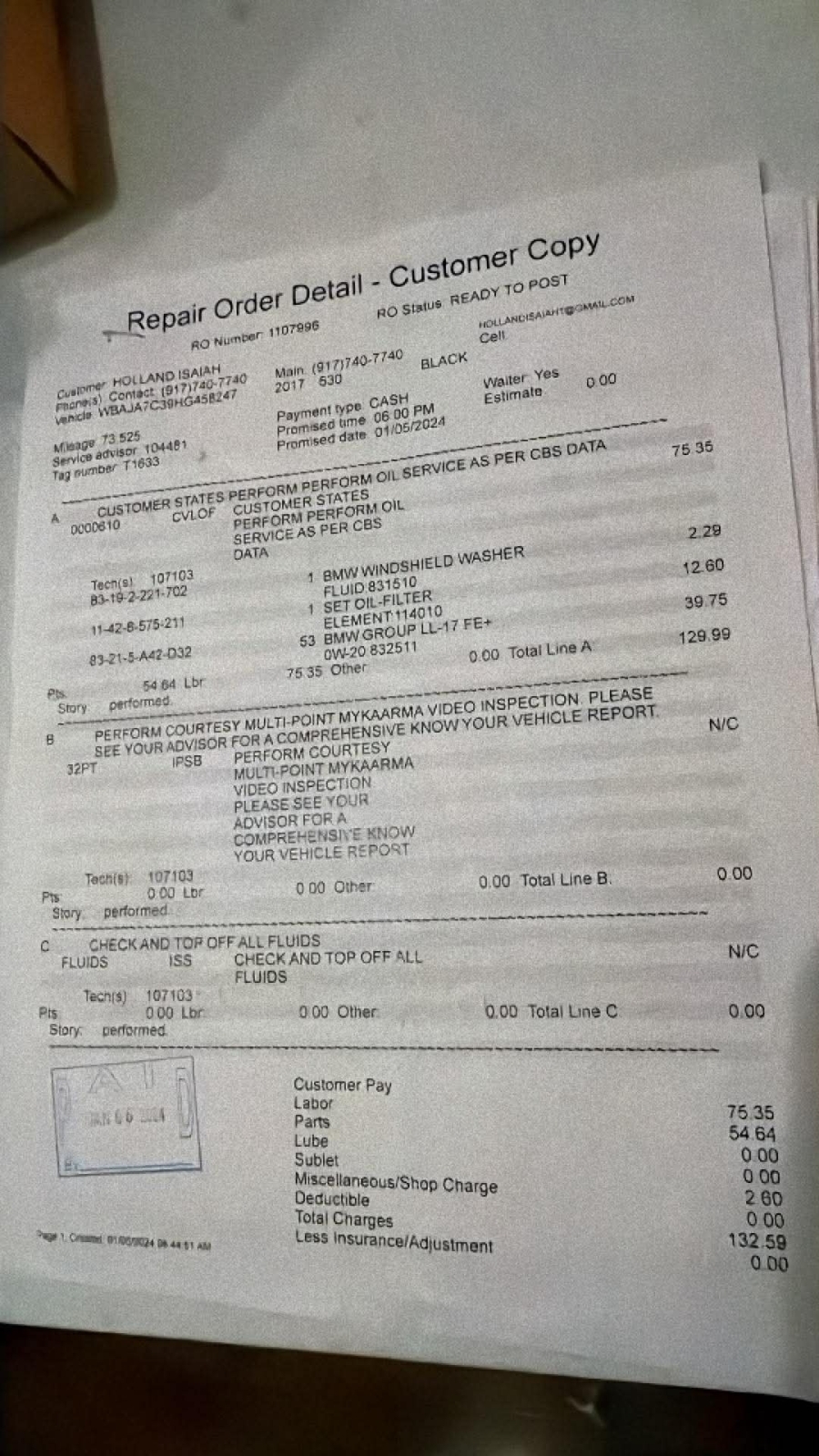 • Multi-point BMW inspection performed (MyKaarma video inspection)